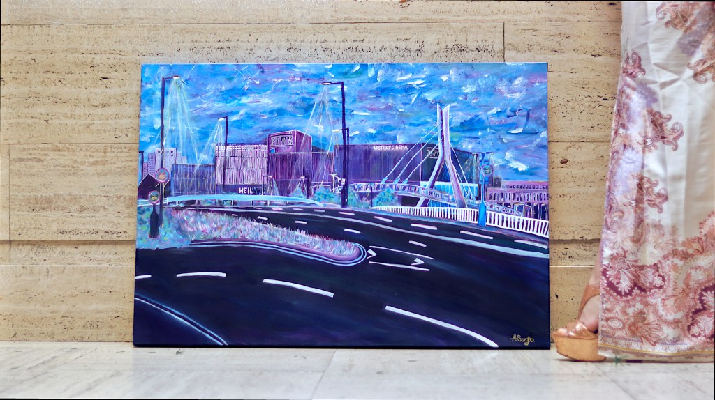 Swift’s practice often explores place as emotion and idea, not just geography. In this cityscape, Barnsley feels alive, unsettled and open to interpretation — inviting viewers to ask themselves, what does this town mean to me?