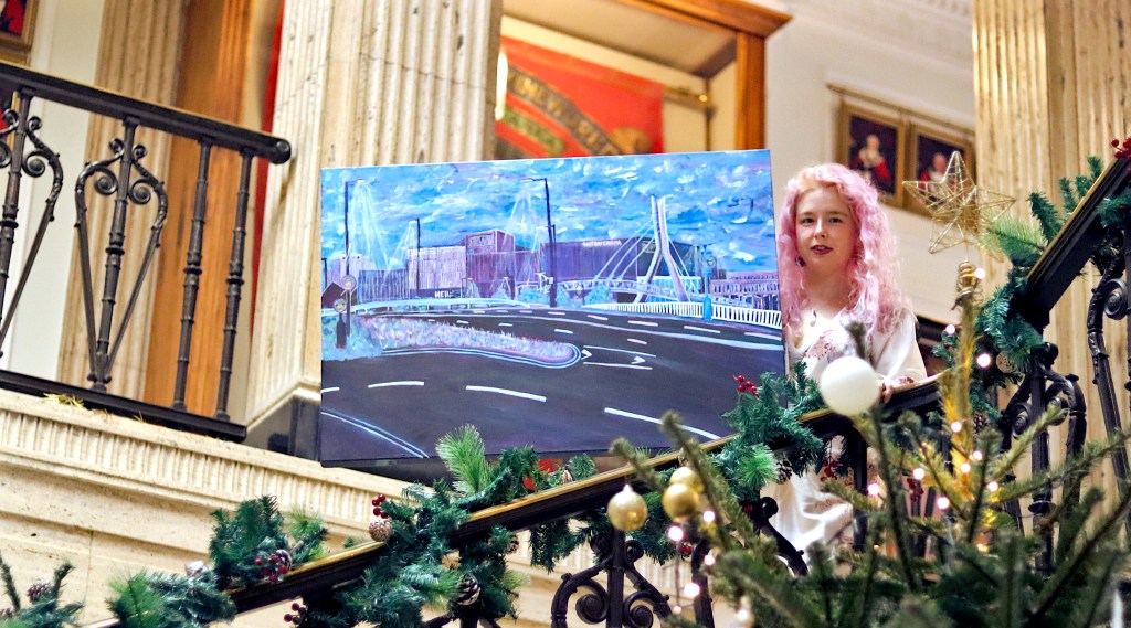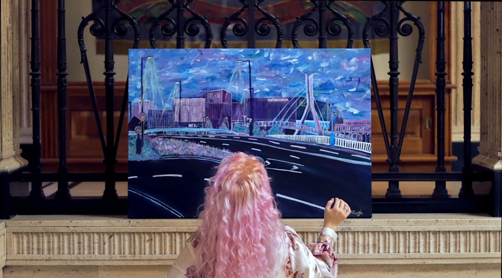 Early this December Pitz had the privilege of joining local artist Heidi Swift inside Barnsley Town Hall as she unveiled her latest cityscape painting — a vivid, expressive take on Barnsley that blurs the line between reality and creative imagination. Swift’s new piece is recognisable yet otherworldly: The everyday becomes timless and unique, the colours are reimagined, and familiar architecture takes on a dreamlike quality. It’s not a photo-perfect view of the town — it’s Barnsley seen through a creative lens and immortalised on canvas.