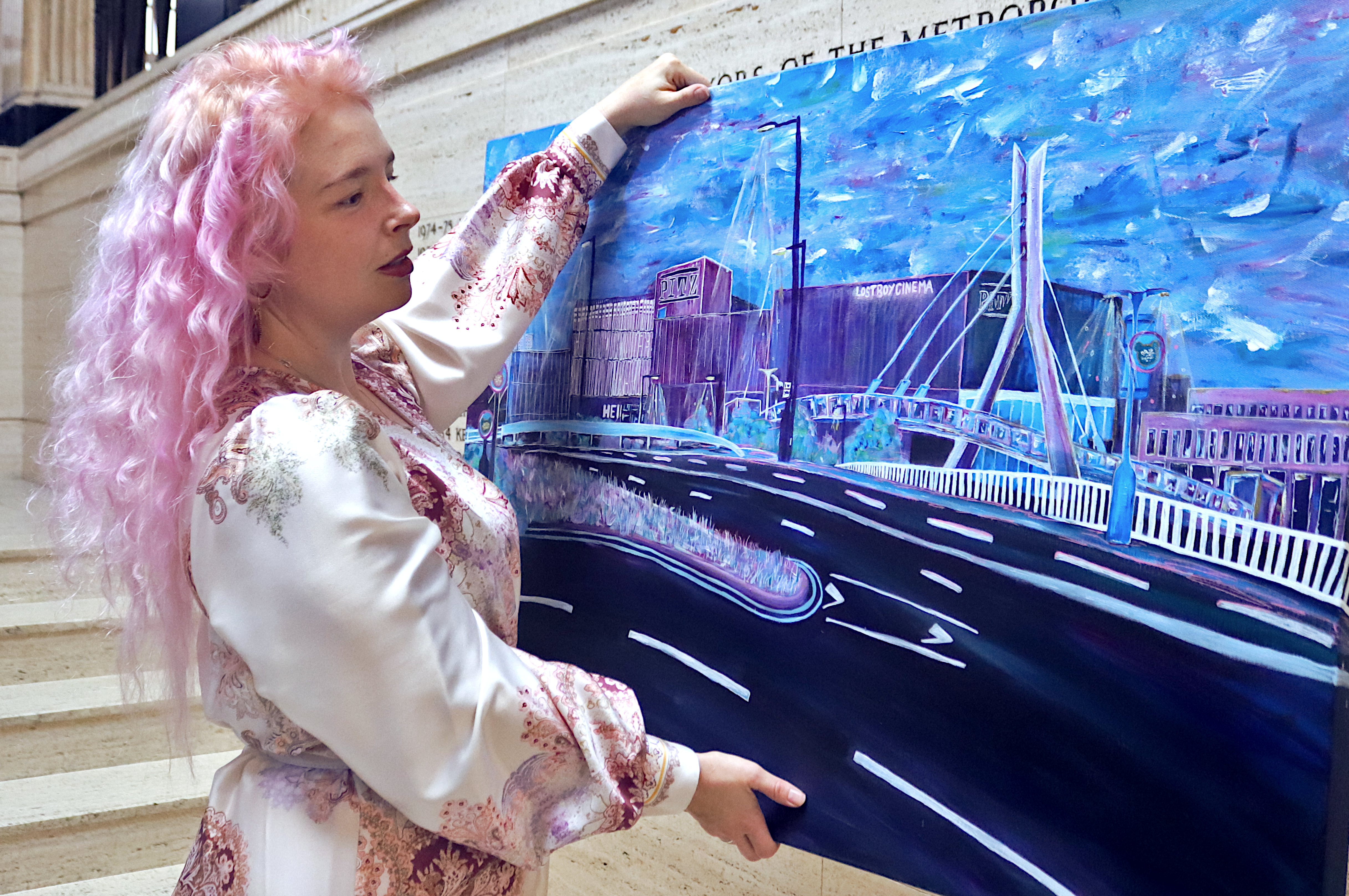 Pitz joined local artist Heidi Swift at Barnsley Town Hall as she unveiled a bold new cityscape painting that reimagines the town through colour, emotion and creative perspective.